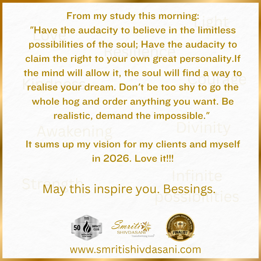 "I am overjoyed to share that I have been awarded the Exceptional Leader, this was part of my vision for 2026. This moment means so much more because of the deep inner journey I have been on with Smriti. The sessions, reflections, and the inner work helped me lead with greater presence, power, and authenticity. Thank you, Smriti, for being such a luminous guide, coach and mentor. This award may be professional, but the transformation is personal and it all began within."