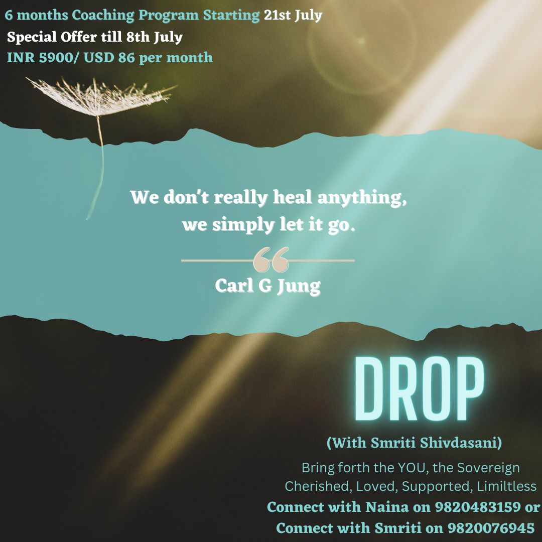 DROP takes you through a 6 months Experiential Journey of letting go of whatever has been stopping you from having it, be it resistance, judgments, ingrained beliefs, disbeliefs, habits, past experiences, worries and doubts about the future, hopelessness with the present etc.