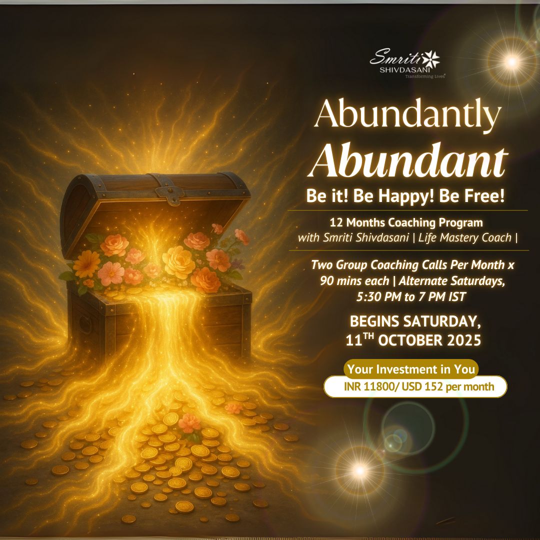 <p><strong><span style="font-size:16px">Abundantly Abundant: Be it! Be Happy! Be Free!*🌟</span></strong></p> <p><strong><span style="font-size:16px">12 Months Coaching Program</span></strong></p> <p><strong><span style="font-size:16px">Two Group Coaching Calls Per Month x 90 mins each</span></strong></p> <p><strong><span style="font-size:16px">Alternate Saturdays, 5:30 PM to 7 PM IST</span></strong></p> <p><strong><span style="font-size:16px">Starting 10th January 2026</span></strong></p>